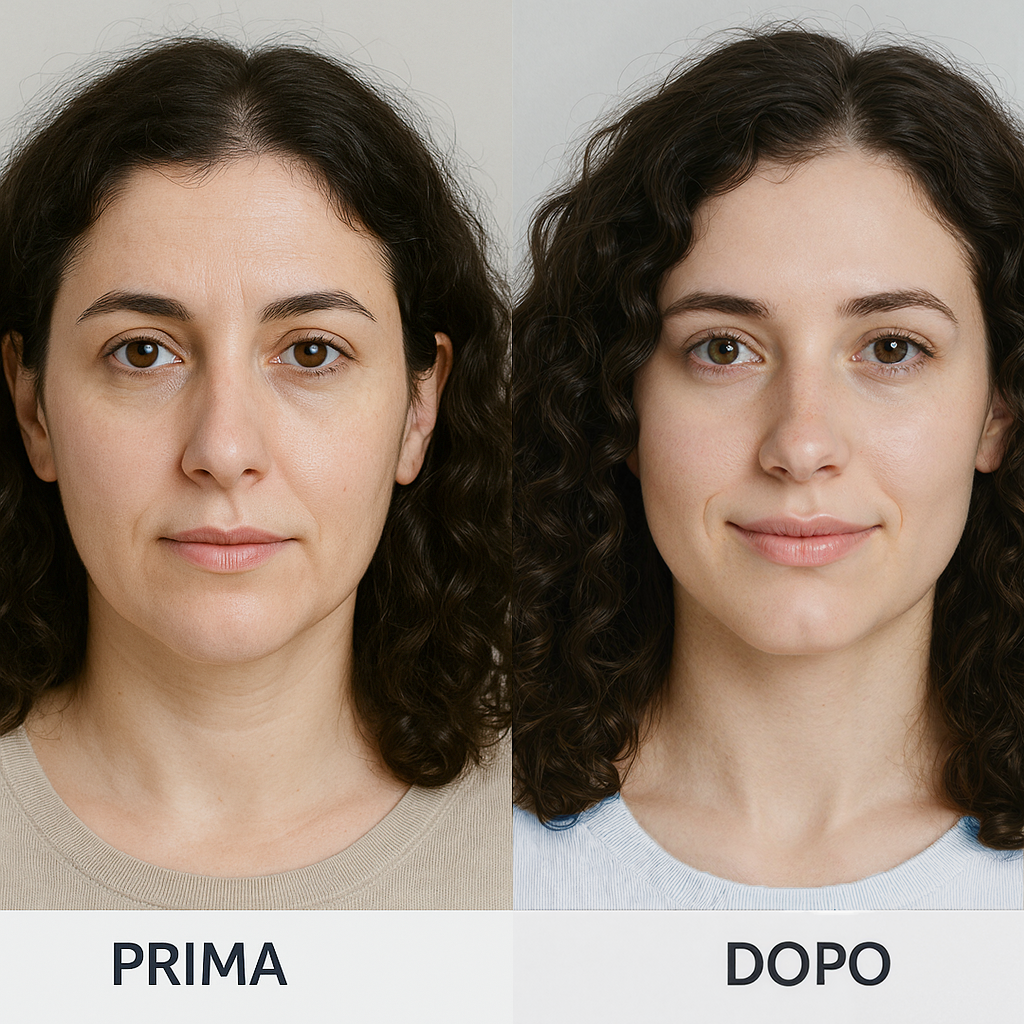 Dopo 8-12 settimane, le rughe risultano visibilmente ridotte, la grana della pelle più uniforme, e l’aspetto generale più giovane.